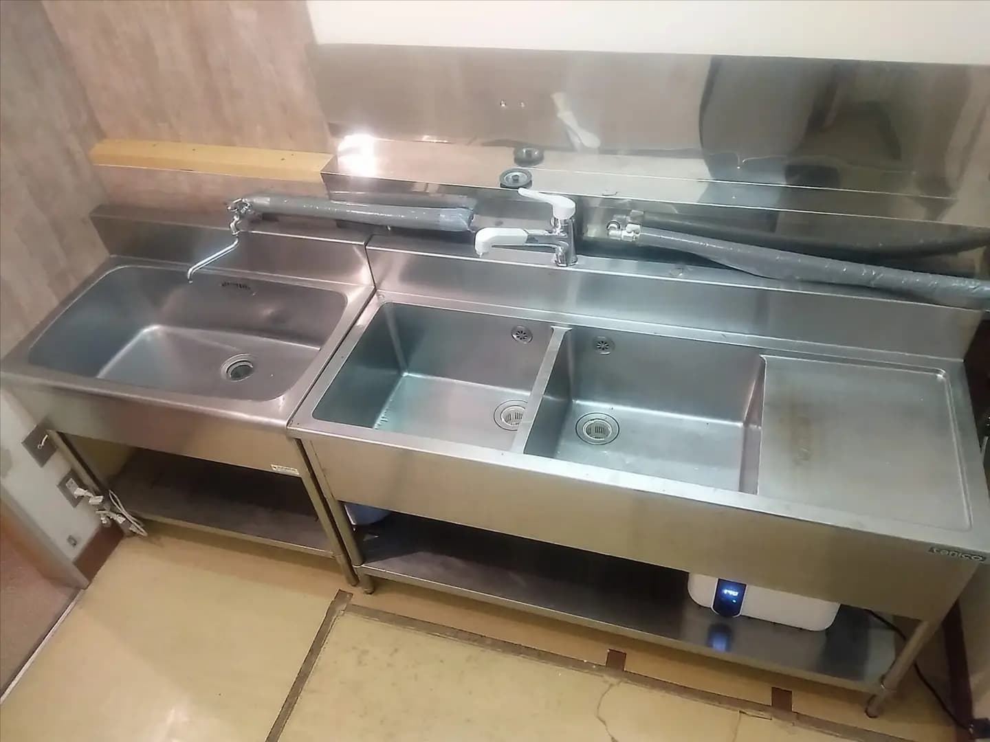 管理棟内の水場。温水が出ます。